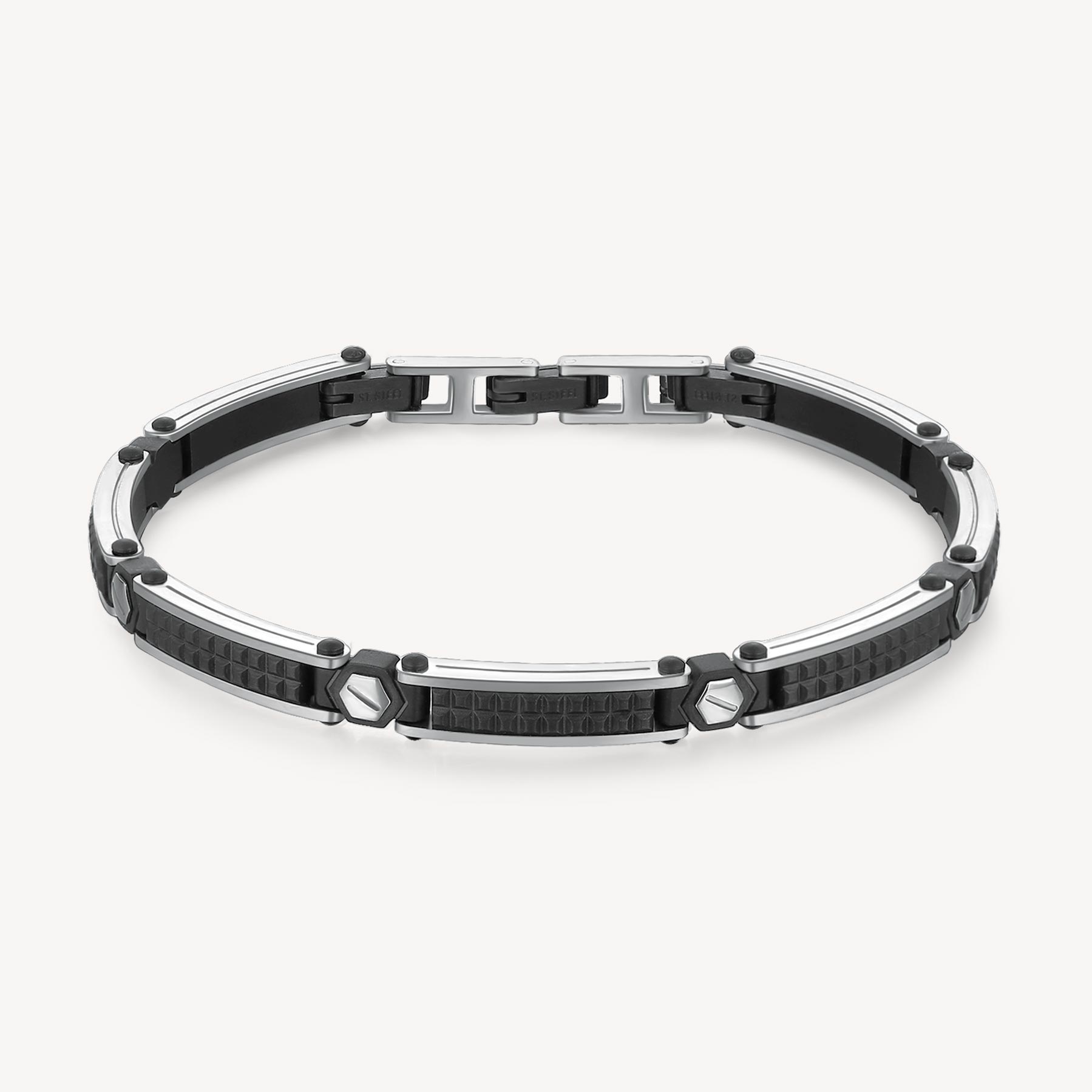 Bracciale semirigido in acciaio 316L lucido e finitura pvd colore nero satinato.