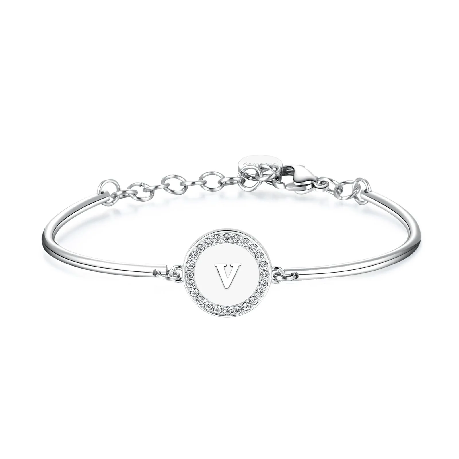 Il Bracciale Brosway Chakra Lettera V (mod. BHK145) è un gioiello raffinato e luminoso, ideale per chi vuole portare con sé un dettaglio personalizzato e ricco di significato. Realizzato in acciaio inossidabile lucido, è impreziosito da un ciondolo circolare con la lettera V incisa al centro, circondata da una cornice scintillante di cristalli che donano luce ed eleganza.