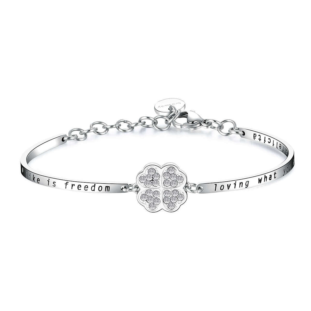 Il bracciale Brosway Chakra BHK158 è un gioiello simbolico che porta con sé un messaggio di fortuna, libertà e passione. Al centro della composizione brilla un elegante quadrifoglio tempestato di cristalli, emblema universale di fortuna e protezione Realizzato in acciaio inossidabile 316L e impreziosito da cristalli luminosi, questo gioiello unisce design contemporaneo e significato profondo.