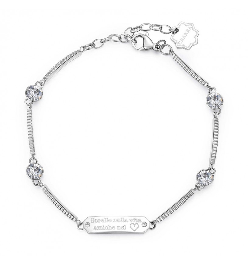 Il legame tra sorelle è un filo invisibile che unisce il cuore, oltre ogni distanza. Il bracciale Brosway Chakra BHKB035 è l’omaggio perfetto a questo amore profondo e autentico. Realizzato in acciaio 316L e impreziosito da cristalli brillanti, il bracciale presenta una targhetta incisa con la frase: “Sorelle nella vita, amiche nel cuore”,