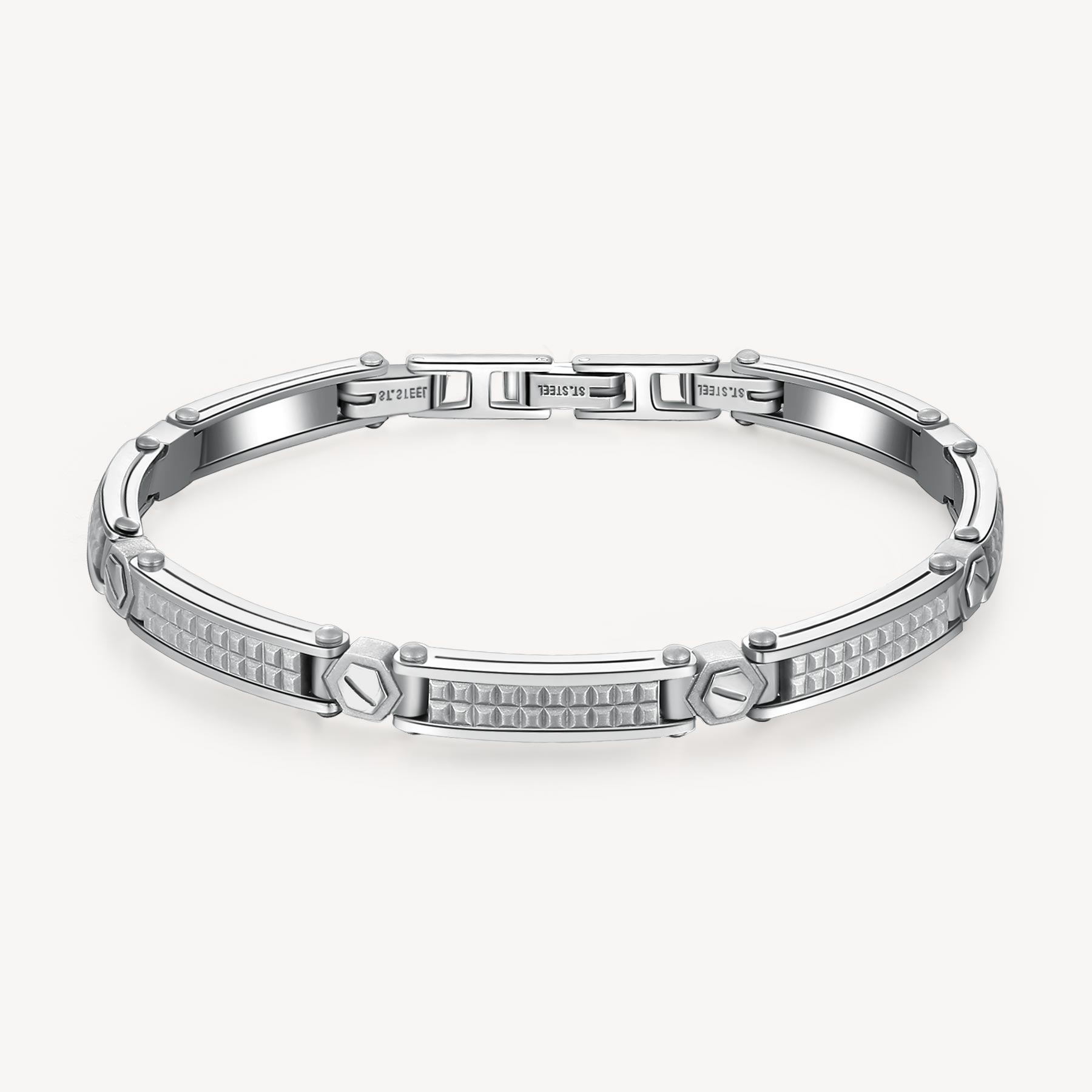 Bracciale da uomo Brosway BBC15 della Collezione Backliner, in acciaio satinato con maglie geometriche e dettagli moderni. Uno stile deciso e raffinato, ideale per ogni look.