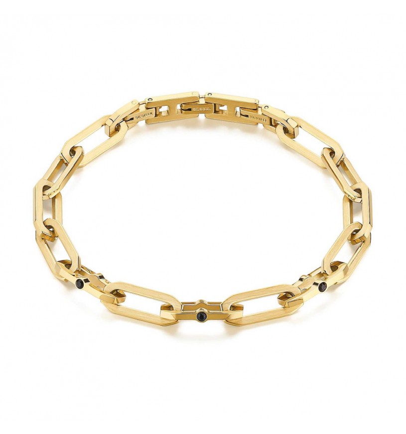 Il bracciale da uomo Brosway Caliburn BBU13 è un accessorio dal carattere deciso e contemporaneo, ideale per chi desidera distinguersi con stile. Realizzato in resistente acciaio con finitura dorata, si caratterizza per le sue maglie rettangolari dal design moderno e per i dettagli raffinati dei cristalli neri incastonati.