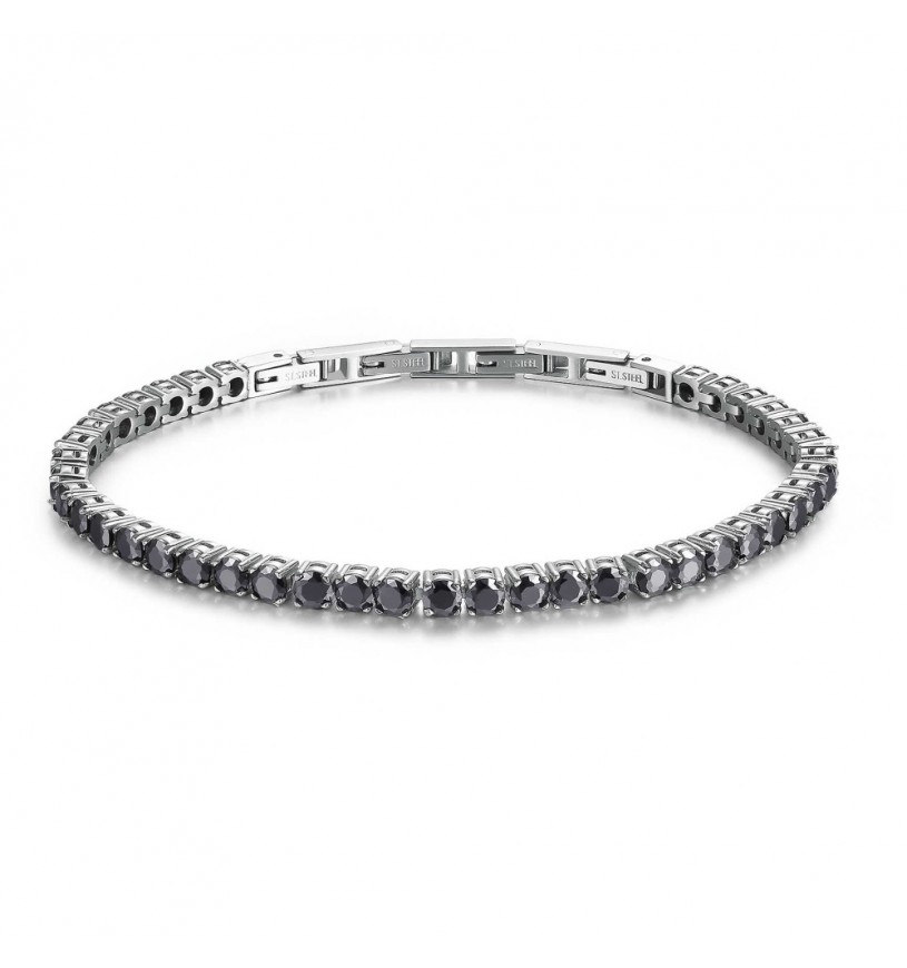Bracciale tennis in acciaio inox con luminosi cristalli neri incastonati (mod.8053851053543)