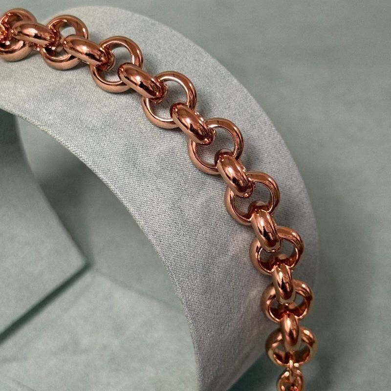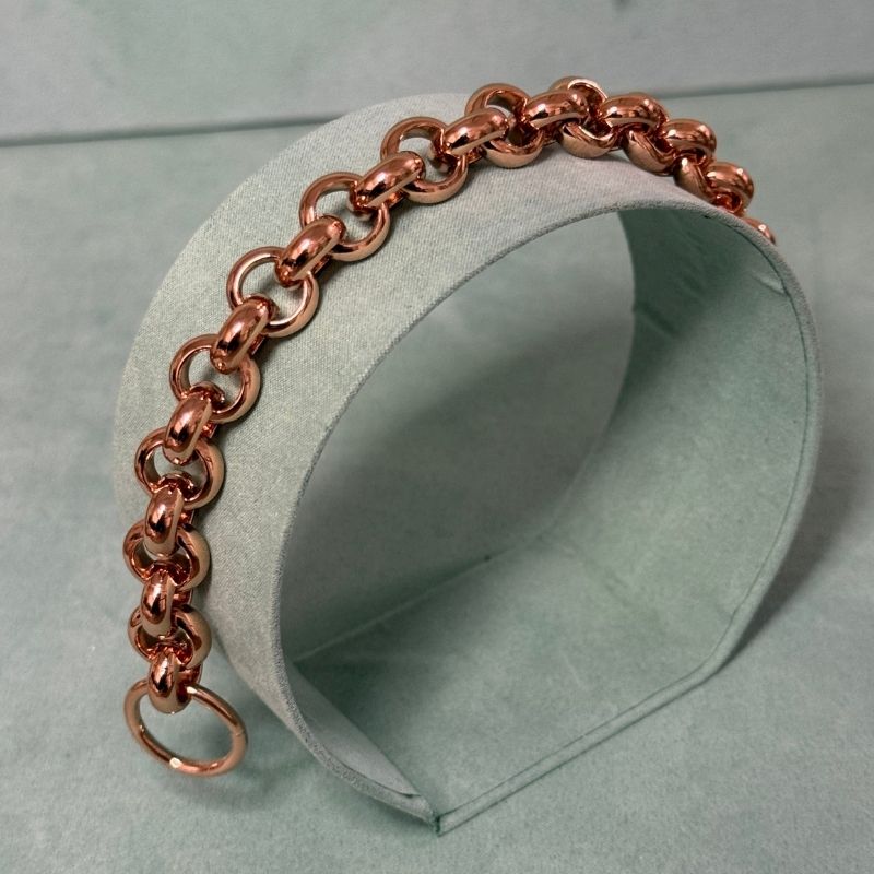 Un bracciale che esprime eleganza e stile con un tocco moderno: questo raffinato gioiello firmato UNOAERRE è realizzato in bronzo con finitura rosé lucida, perfetta per chi ama gli accessori di tendenza. La catena rolò, composta da maglie rotonde e ben definite, conferisce al bracciale un design equilibrato tra classicità e contemporaneità.