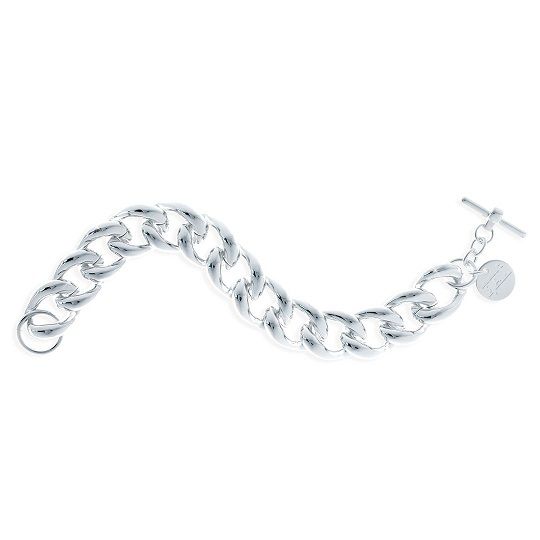 Bracciale Unoaerre Fashion Jewellery da donna, realizzato in bronzo con finitura rodio lucida. Il design a maglie grandi e morbide dona al gioiello un carattere deciso e contemporaneo, ideale per completare con stile sia look eleganti che casual.