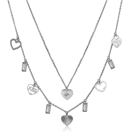 La Collana BAH29 della collezione Chant firmata Brosway unisce eleganza e simbolismo in un gioiello raffinato e femminile. Composta da due fili in acciaio lucido, presenta una serie di ciondoli pendenti a forma di cuore in diverse varianti stilizzate, accanto a cristalli bianchi rettangolari che donano luce e movimento. Il design a doppia catena crea un effetto stratificato moderno, perfetto da indossare sia da solo che abbinato ad altri accessori. Il mix tra romanticismo e geometria rende questo gioiello un’idea regalo perfetta per chi ama distinguersi con classe.