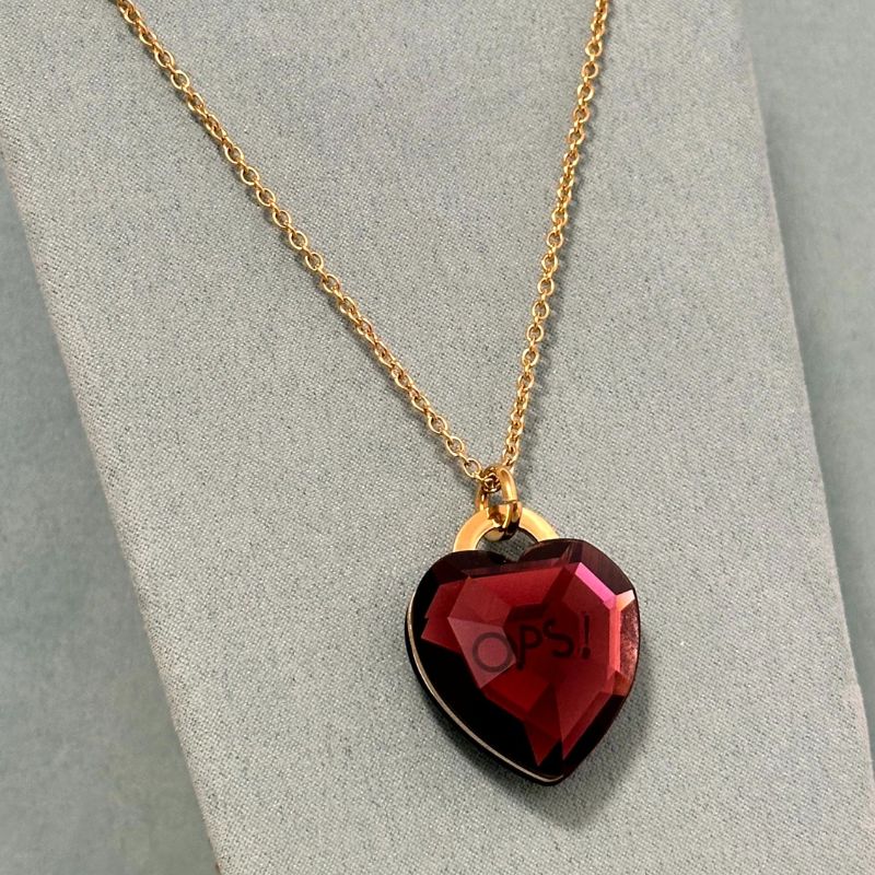 Questo brand italiano ha ottenuto molto successo grazie alla sua capacità di coniugare design accattivante e prezzi competitivi. Questa collana è un esempio perfetto della loro identità: un cuore in cristallo scuro con inciso “OPS!”, su una catenina dorata – elegante ma con un tocco ironico e distintivo.