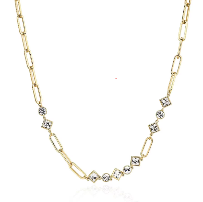 Gioiello realizzato in acciaio 316L e pvd oro con cristalli crystal. Lunghezza: 450 mm.