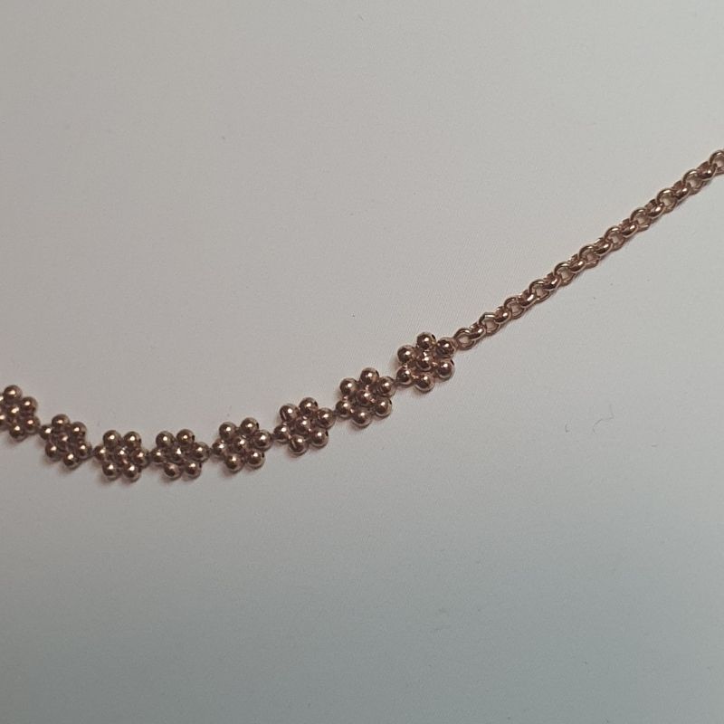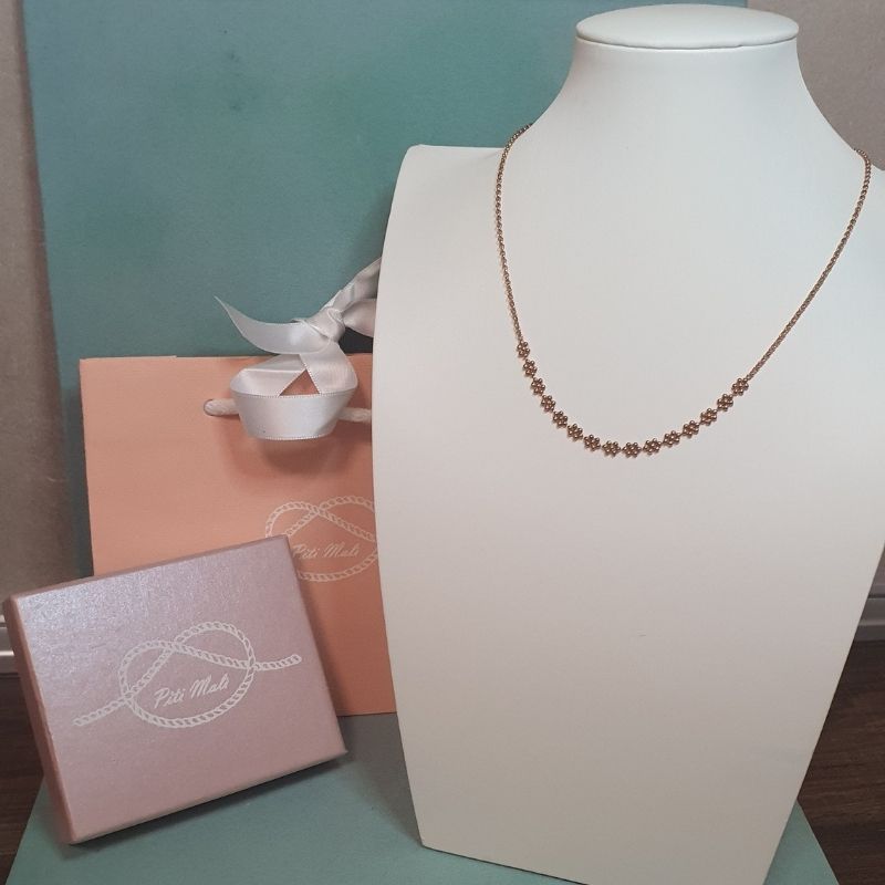 Realizzata artigianalmente in Italia, presenta una delicata catena impreziosita da piccoli elementi floreali lucidi, perfettamente armonizzati per donare un tocco di luce raffinata ad ogni outfit. Un gioiello pensato per la donna che ama distinguersi con stile, senza rinunciare alla semplicità. Perfetta da indossare da sola o abbinata ad altri accessori Piti Mali per un look coordinato e moderno.