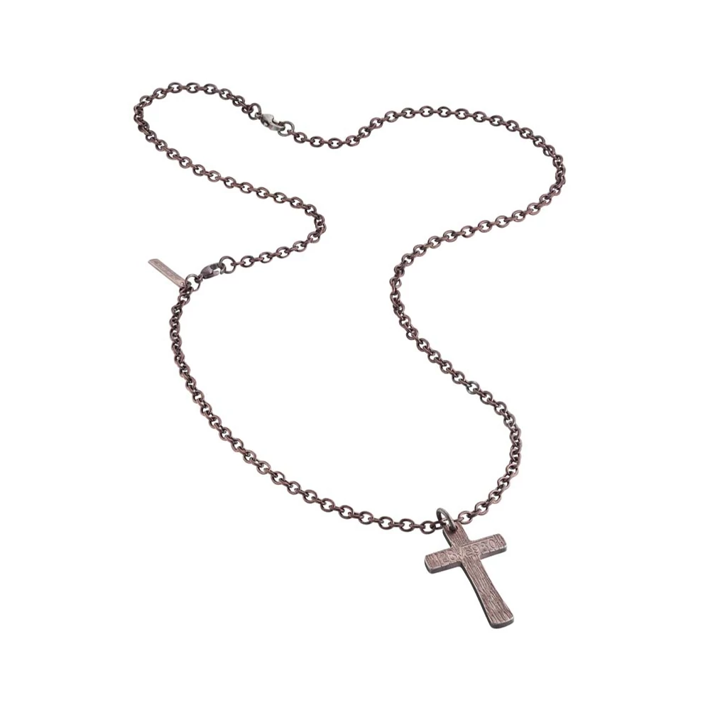 Collana uomo Police in acciaio brunito con pendente a croce effetto vintage. Design deciso e spirituale, perfetta per uno stile autentico.