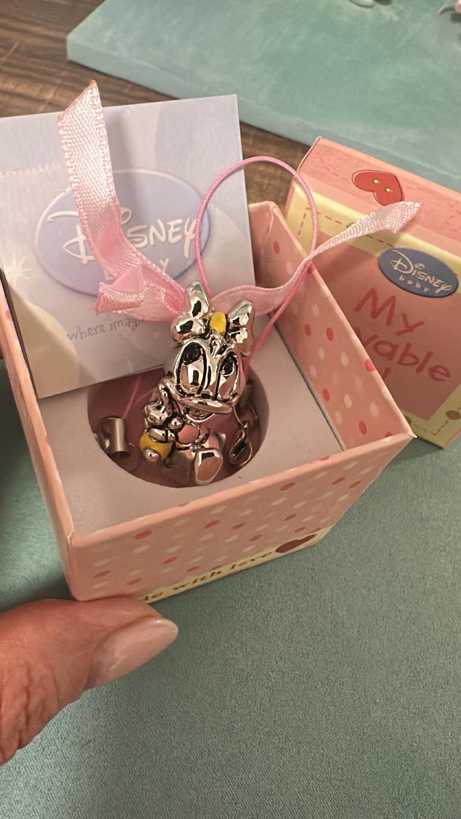 Accompagnato dalla sua scatolina originale Disney Baby, decorata con stelline e colori pastello, questo piccolo capolavoro è perfetto come bomboniera, dono per nascita, battesimo o baby shower. La qualità delle finiture e il design dolce e raffinato lo rendono un ricordo prezioso da conservare nel tempo o da esporre come decorazione in cameretta.