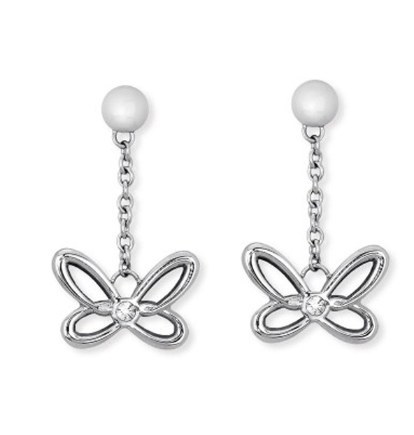 Realizzati in acciaio anallergico lucido, presentano una piccola catenina che sostiene una farfalla stilizzata impreziosita da un cristallo brillante centrale.
