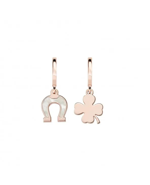 Porta sempre con te un pizzico di fortuna e stile con gli Orecchini Amen ORMPFCRB, parte della raffinata Collezione Le Madreperle. Questo modello asimmetrico presenta due simboli portafortuna: un ferro di cavallo e un quadrifoglio, entrambi impreziositi dalla delicata madreperla naturale e incorniciati da una finitura in oro rosa.