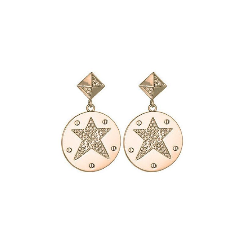 Il pendente rotondo è decorato con una stella centrale impreziosita da cristalli brillanti, perfetta per riflettere la luce e donare un tocco di glamour ad ogni outfit. Il logo Liu Jo è elegantemente inciso al centro della stella, mentre la chiusura geometrica a piramide aggiunge un tocco moderno e deciso. Ideali per occasioni speciali o per rendere unico anche il look più semplice, questi orecchini sono un vero must-have per chi ama distinguersi con eleganza.